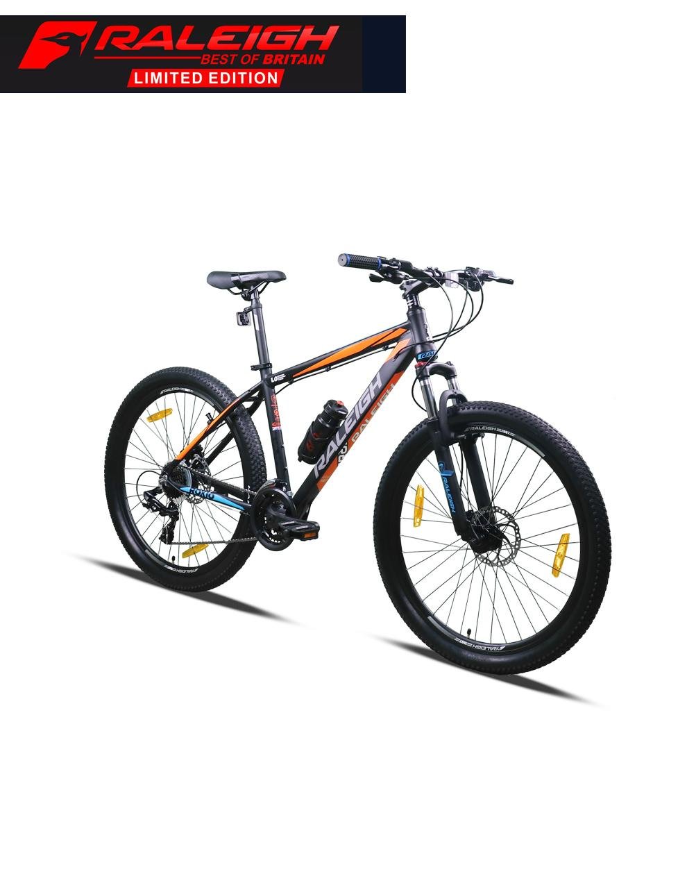 | Frame Light Alloy 6061 with Internal Cable Routing | Raleigh Suspension Fork with Preload + MLO |